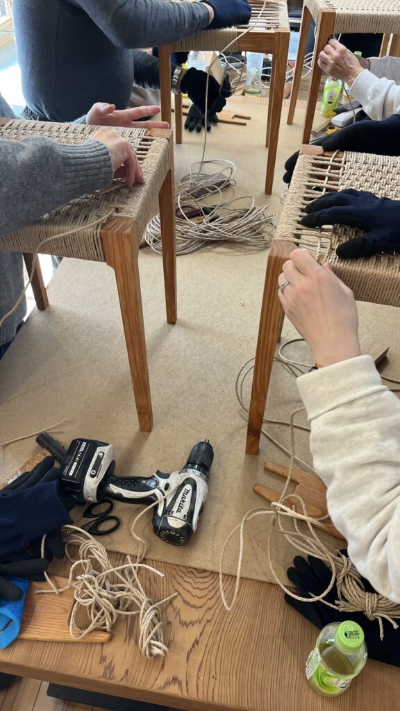 ご参加の方には座面のひもを張る体験をしていただきます。